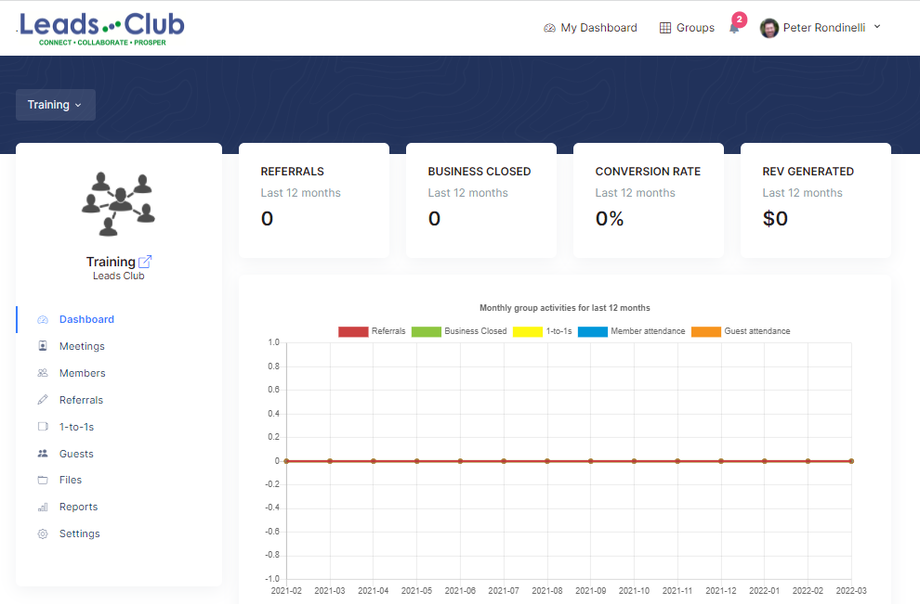 - Referrals: Number of referrals sent between members in the last 12 trailing months